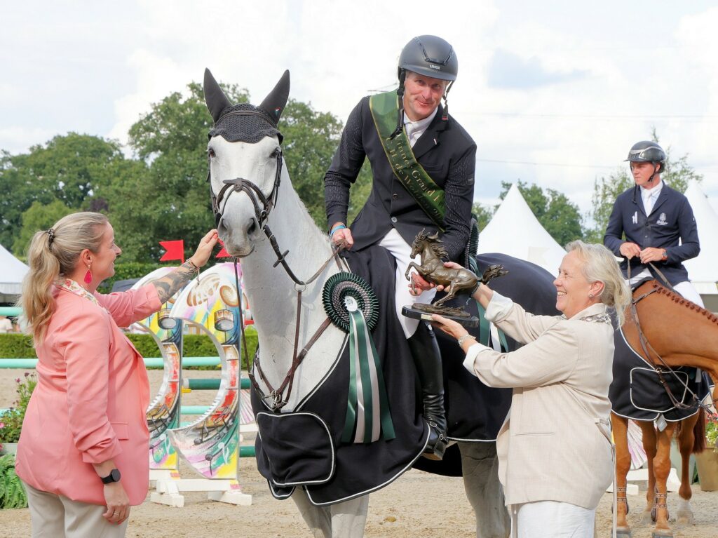 Het is hem gelukt, voor de tweede maal de Grote Prijs Gemeente De Wolden winnen. Michael Greeve uit Veeningen was in de barrage twaalf andere ruiters te snel af en deed wat hij in 2016 voor het eerst had gedaan, winnen. Het was een bijzonder trio dat de eerste drie plaatsen voor zich opeiste. Want ook de tweede man is een oud-winnaar, de Amerikaan Ansgar Holtgers Jr. Hi won verleden jaar één van de twee Grote Prijzen in Veeningen. Ook de derde ruiter, Jur Vrieling uit Holwierde, is oud-winnaar. Hij toonde zich driemaal de beste, in 2015, 2018 en 2022. Ditmaal moest hij twee combinaties voor zich dulden.